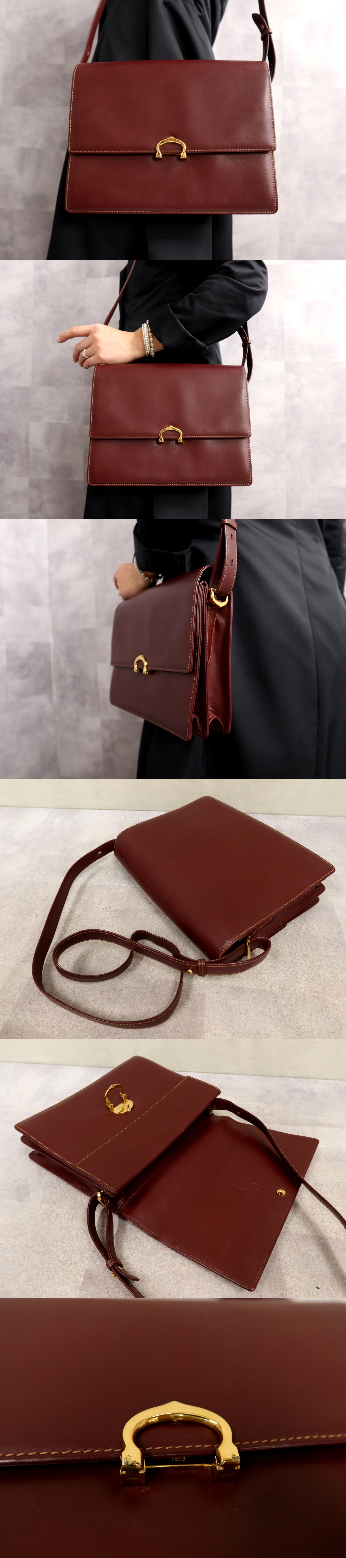 Store ●超美品●Cartier カルティエ●マスト●カーフ レザー 本革●ショルダー バッグ●ボルドー●ゴールド金具●肩掛け●収納 かばん●Js66300