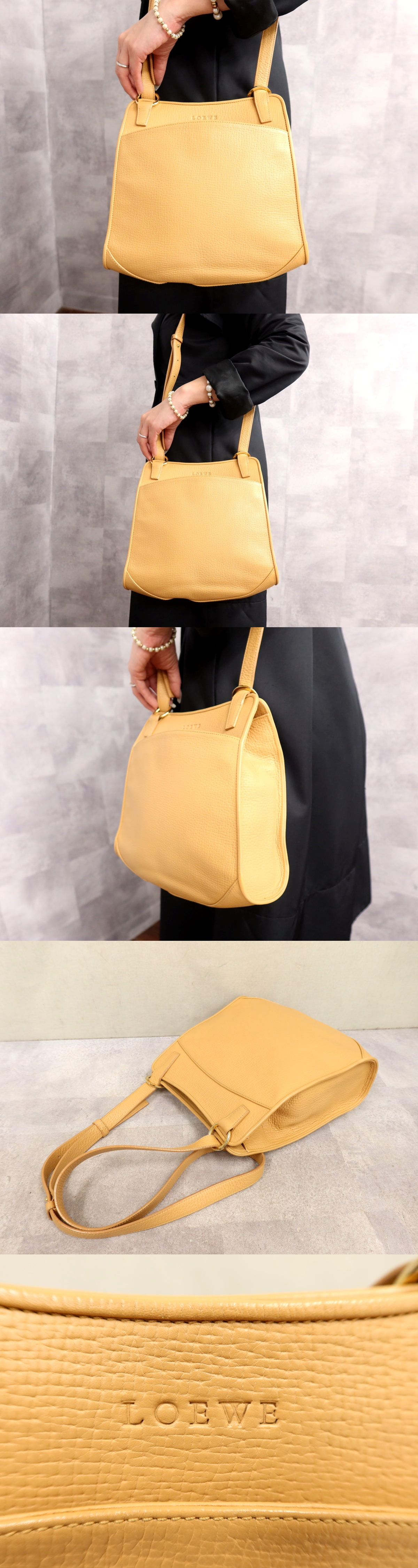 Store ●超美品●LOEWE ロエベ●ロゴ型押し●カーフ レザー 本革●ショルダー バッグ●ベージュ系●ゴールド金具●肩掛け●かばん●Js66237