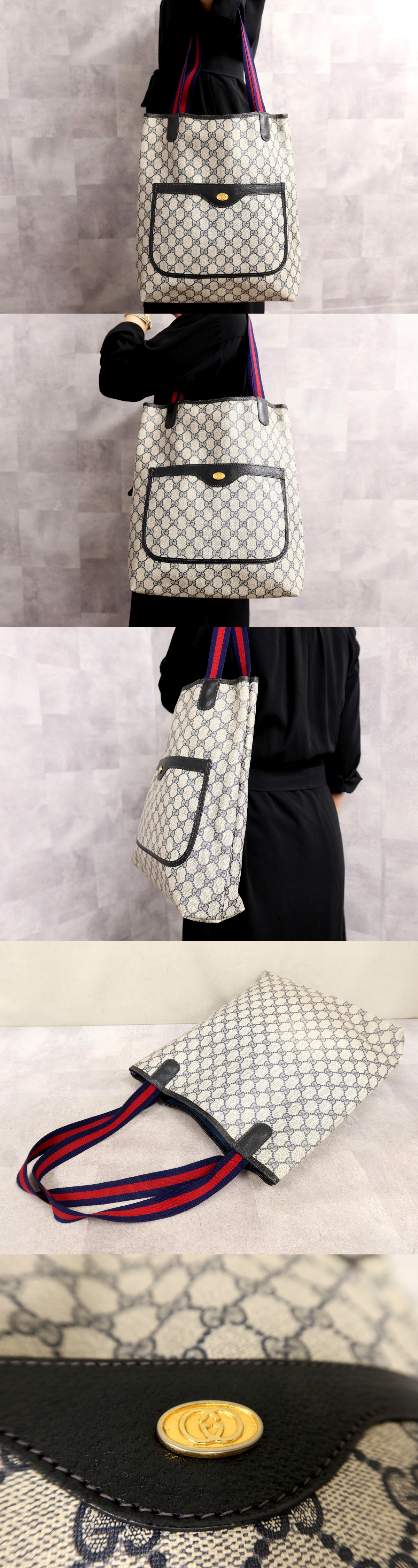 Product name: ●超美品●GUCCI オールド グッチ●シェリー●GGスプリーム●PVC カーフ レザー 本革●トート バッグ●ネイビー 白 赤●A4 かばん●Js66701