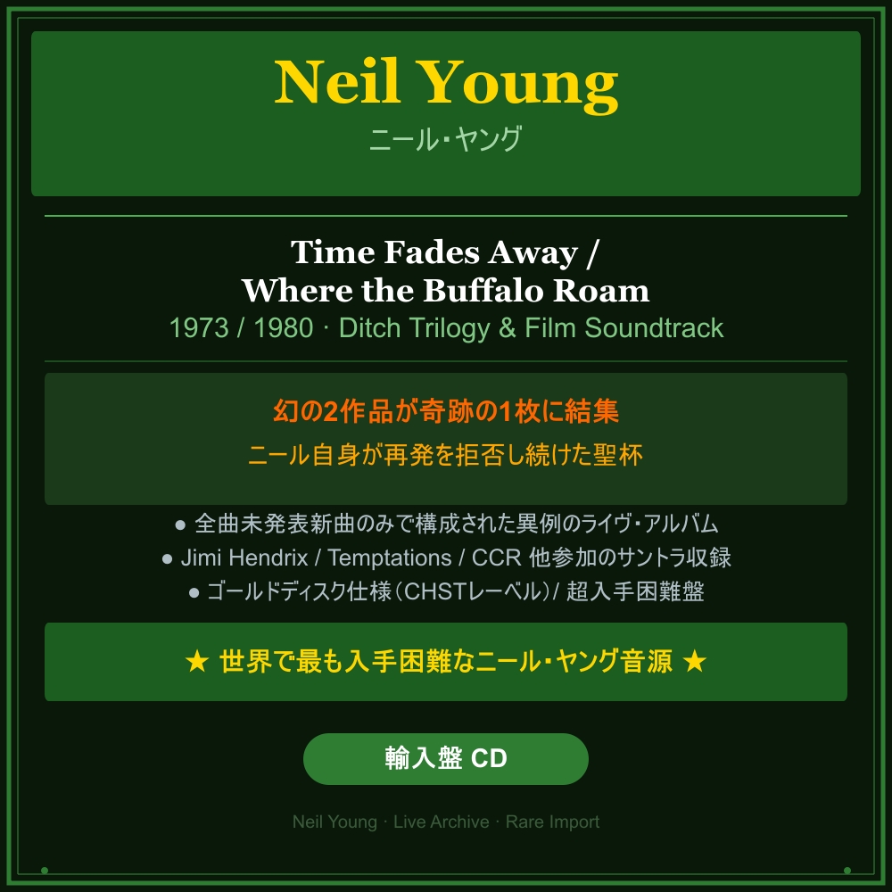Product name: ●Neil Young / ニール・ヤング● Time Fades Away / Where the Buffalo Roam 1973 / 1980 輸入盤CD