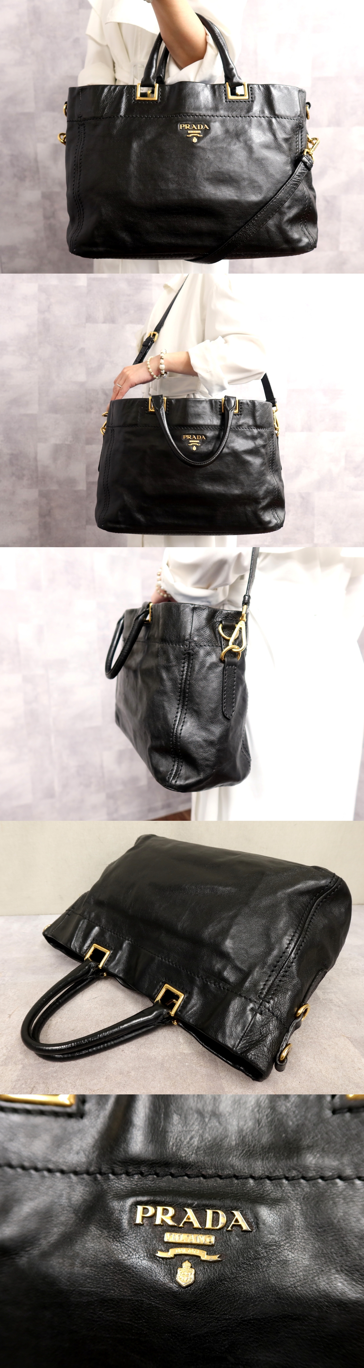 Product name: ●美品●PRADA プラダ●ロゴ金具●カーフ レザー 本革●2way トート バッグ●黒●ゴールド金具●イタリア製●A4 収納 書類 かばん●Js66842