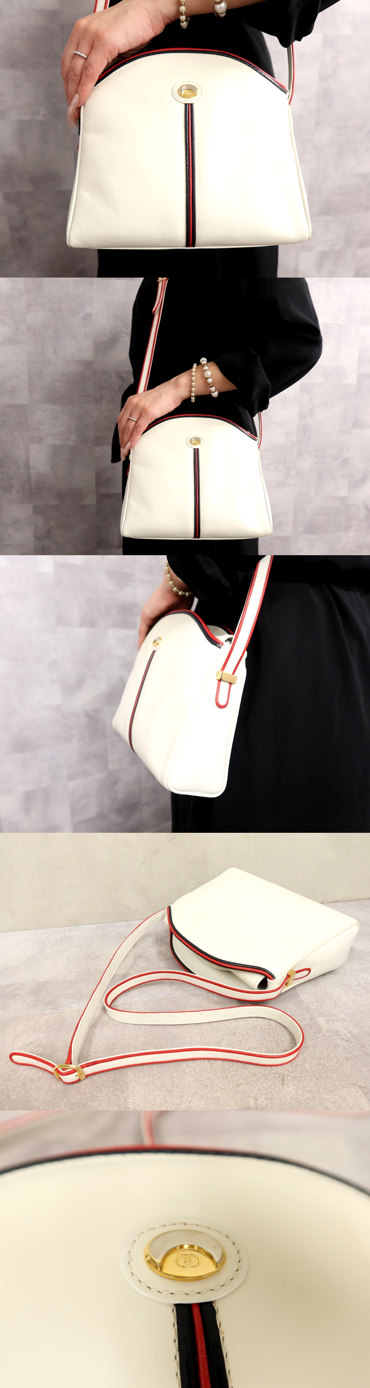 Store ●超美品●GUCCI オールド グッチ●カーフ レザー 本革●ショルダー バッグ●白 赤 ネイビー●G金具●イタリア製●ヴィンテージ●Js67303