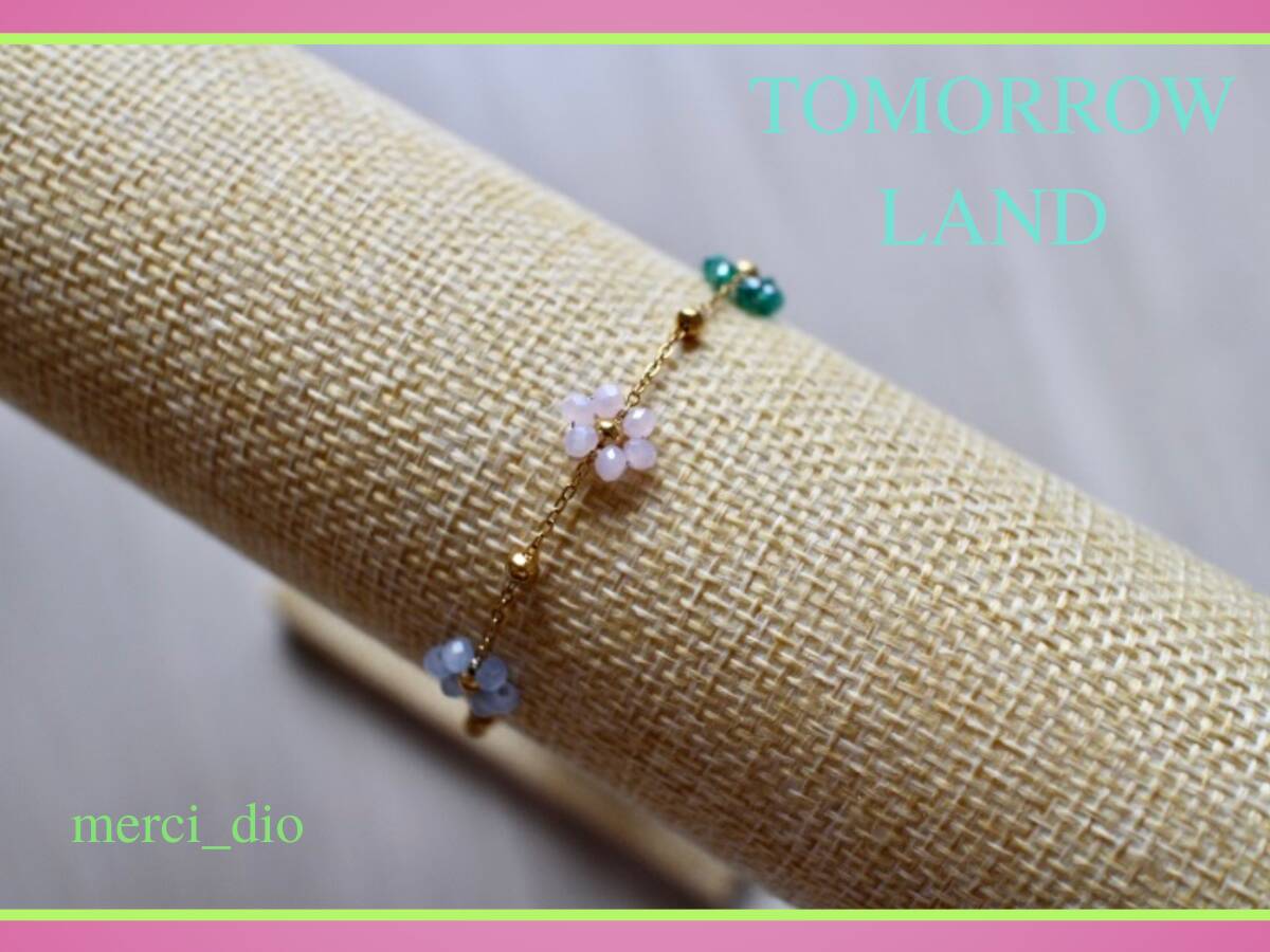 トゥモローランド TOMORROWLAND ビジューフラワー ゴールドチェーン ブレスレット クリアブルー トレンド 新品 未使用 wai ロンハーマン