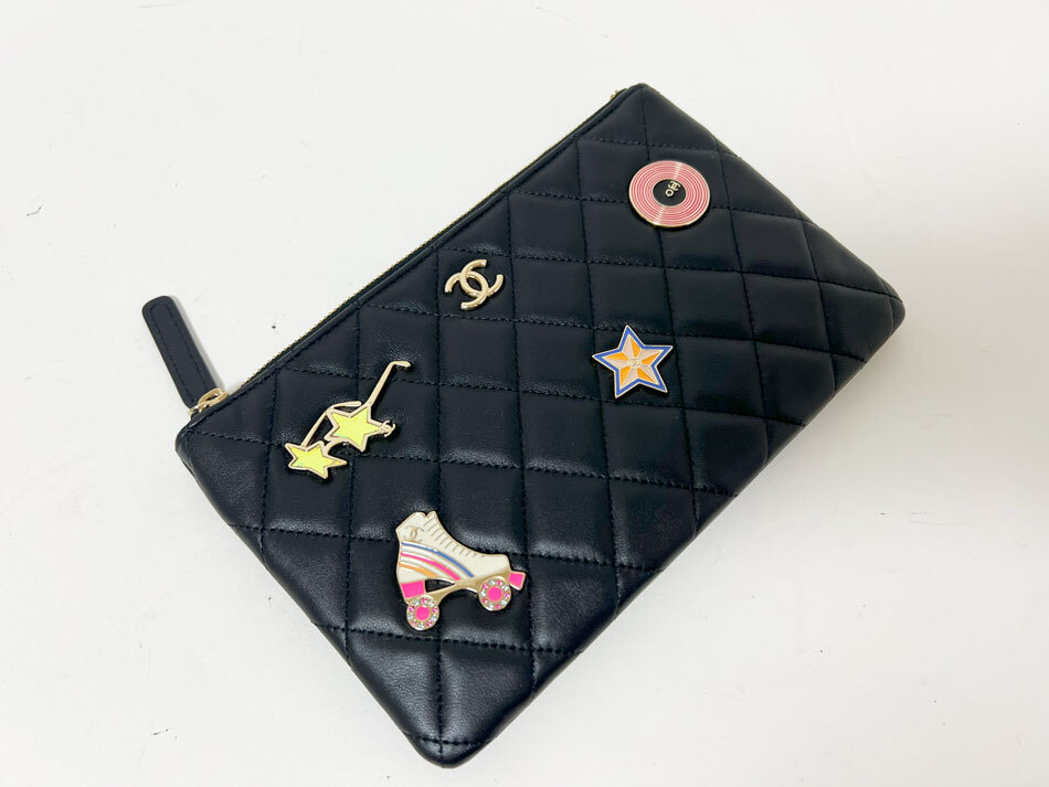 CHANEL シャネル マトラッセ クラッチバッグ ポーチ ラムスキン ブラック チャーム AP1071 美品