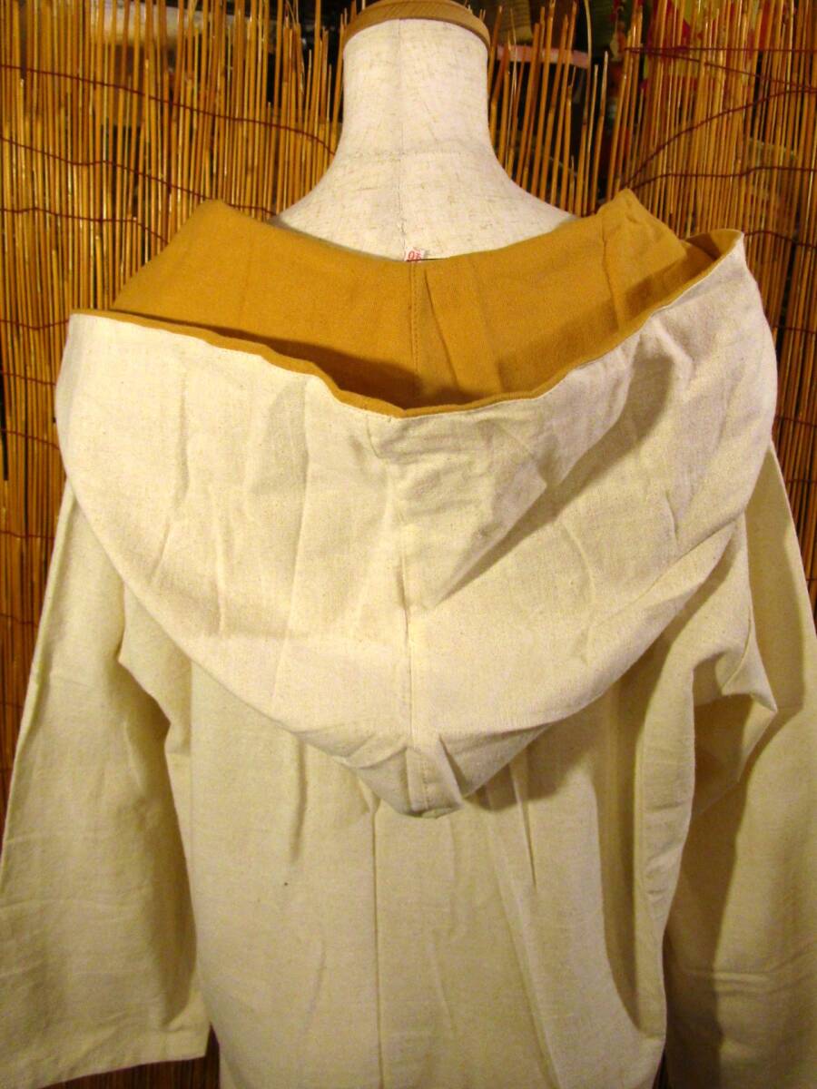 ①新品*男女兼用*無地*コットン素材*チャイナボタン*フード付き*ミドルコート