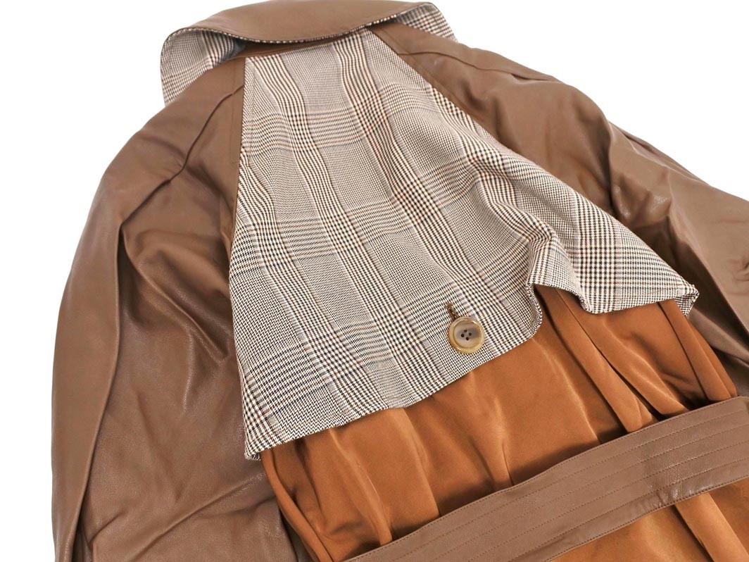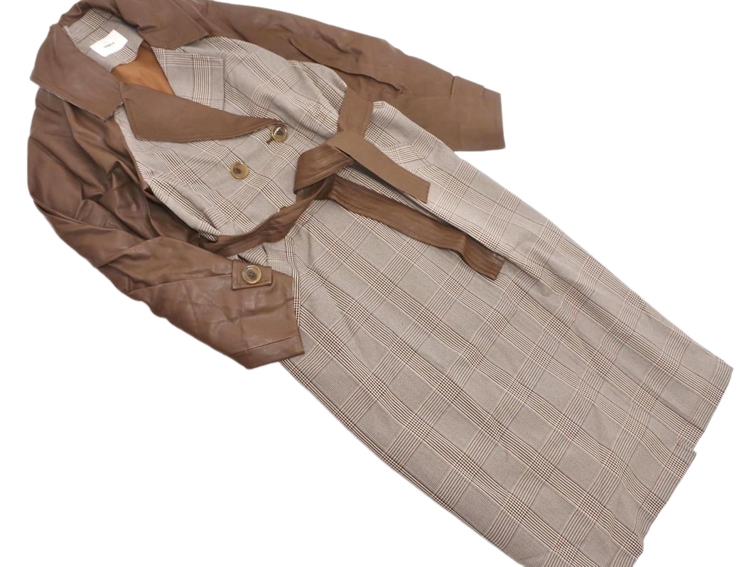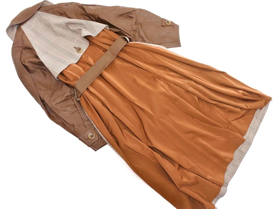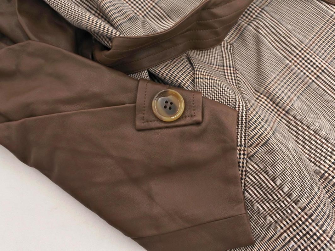 Product name: MURUA ムルーア フェイクレザー 切替 グレンチェック ロング コート sizeF/茶 ◇■ ☆ ekc2 レディース