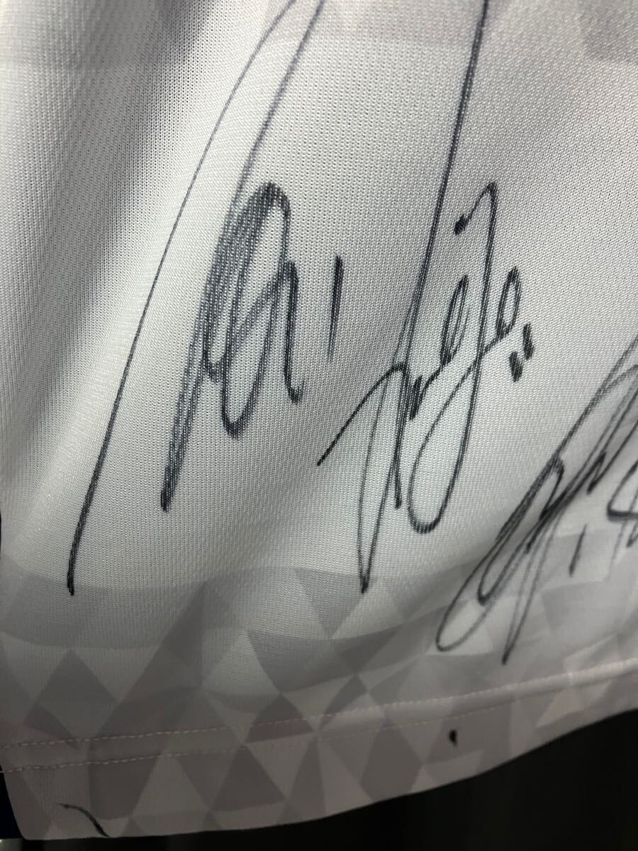 タグ付き未着用品でサイズはO-XOで67丈、幅52程になります。未着用品ですが、サインを頂いた時についたマジック跡があるのと7年ちょっと前のユニフォームなので神経質な方の入札はすみませんがお控え下さい。サインは練習場で頂きました。
