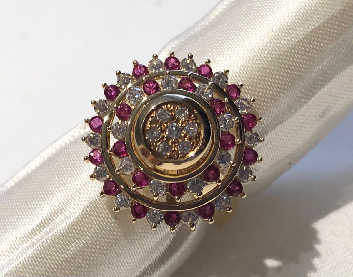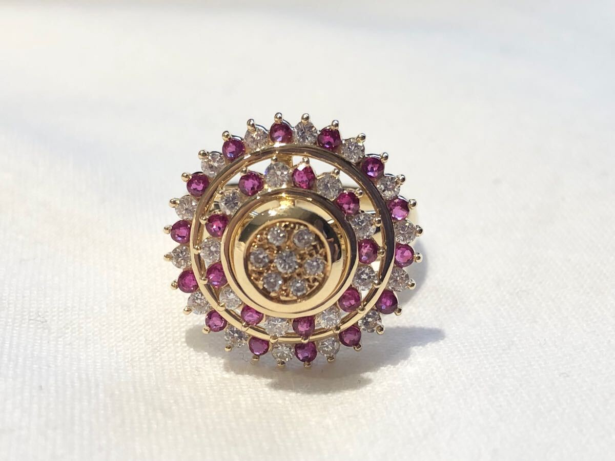 [新品同様]K18YGイエローゴールド日本製天然ルビーダイヤモンドリング指輪二重廻れる