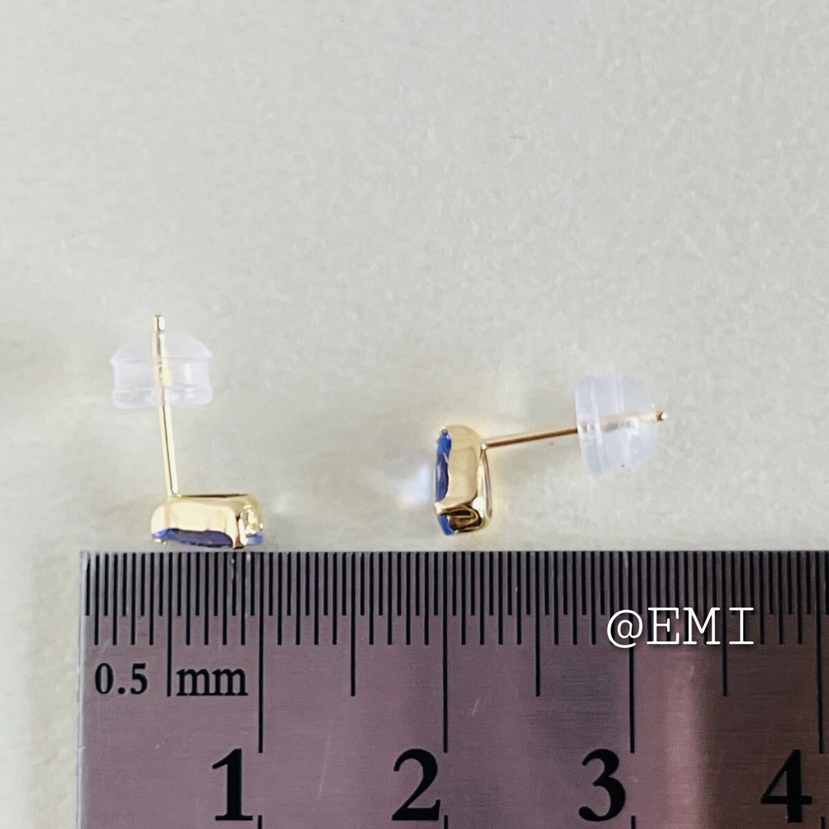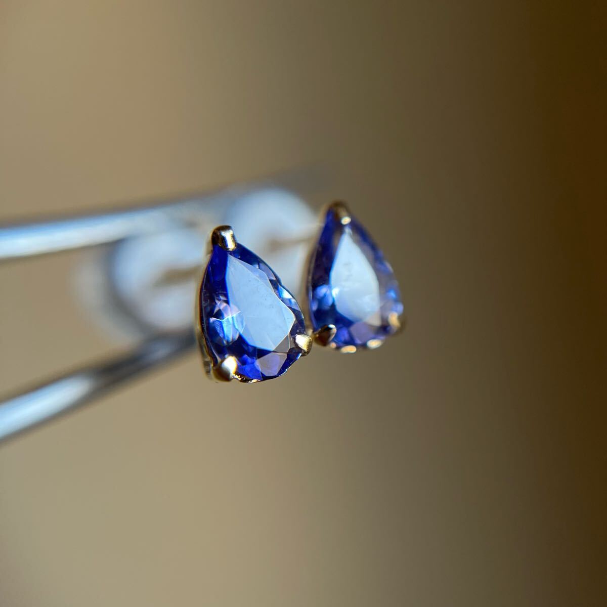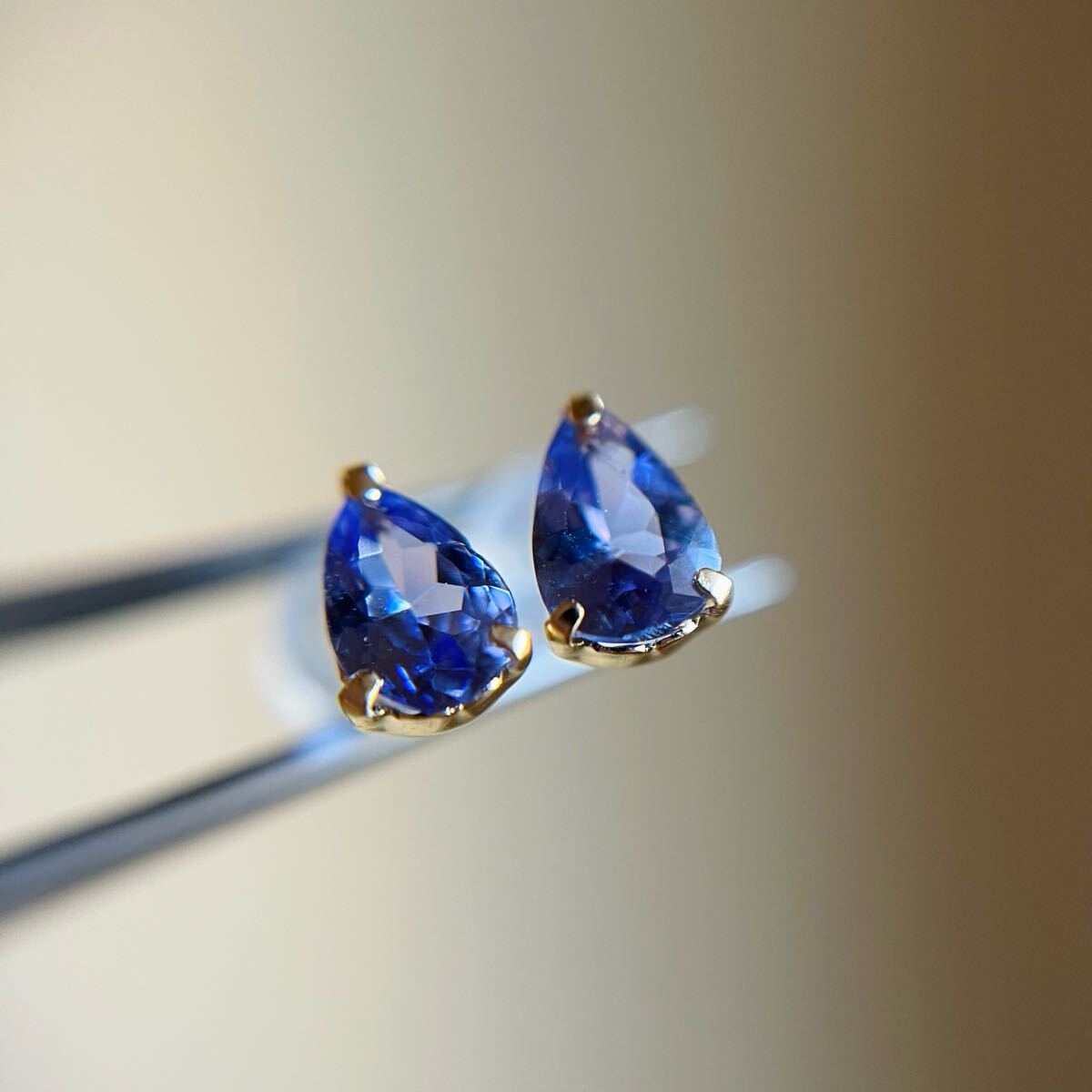 パープリッシュブルーがキラリと輝く天然タンザナイト4×6mmサイズ、ペアシェイプカットのピアスです。