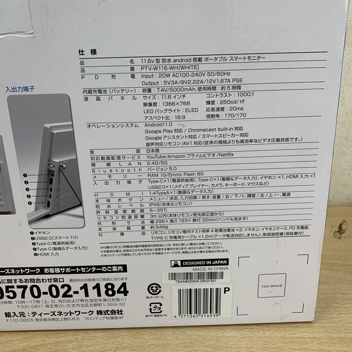Product name: 美品 ディーズネットワーク 11.6インチ 防水 android搭載 ポータブル スマートモニター PTV-W116-WH 映像機器