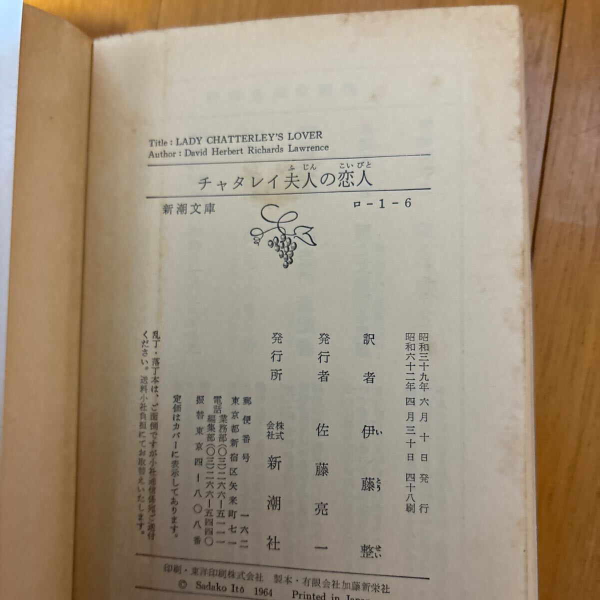 Product name: 80c チャタレイ夫人の恋人 ロレンス 伊藤整 新潮文庫 下半身不随 森番 肉体関係