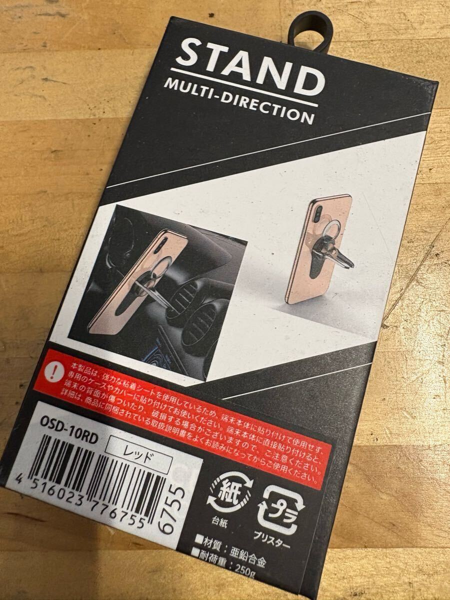 車載ホルダー付きマルチスマホリングホルダーレッド 送料込です。定価1848円 詳しくはHP https://www.fscweb.co.jp/hpdata/page_2_23_osd_10.html