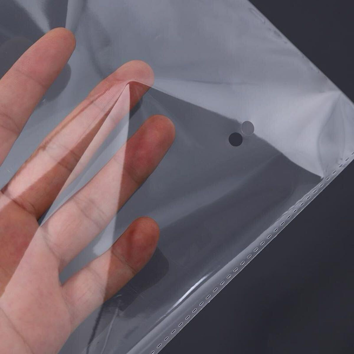 テープ付きで封がしやすく、穴あきなので空気が抜けかさばることなく梱包できます。