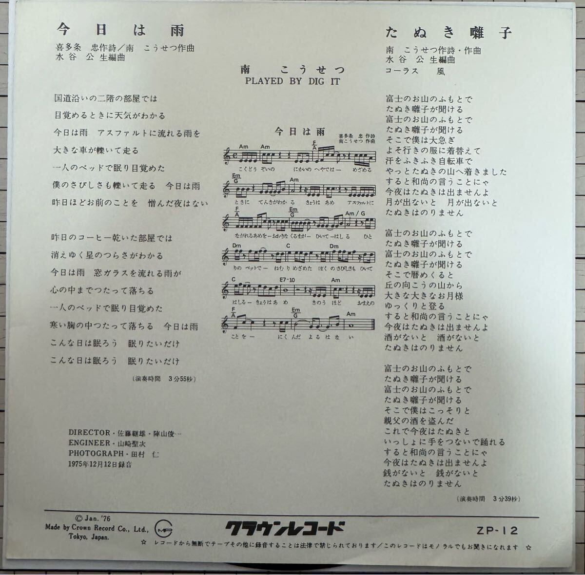 Product name: 即決◆南こうせつ/今日は雨/たぬき囃子 (見本盤 美盤EP)