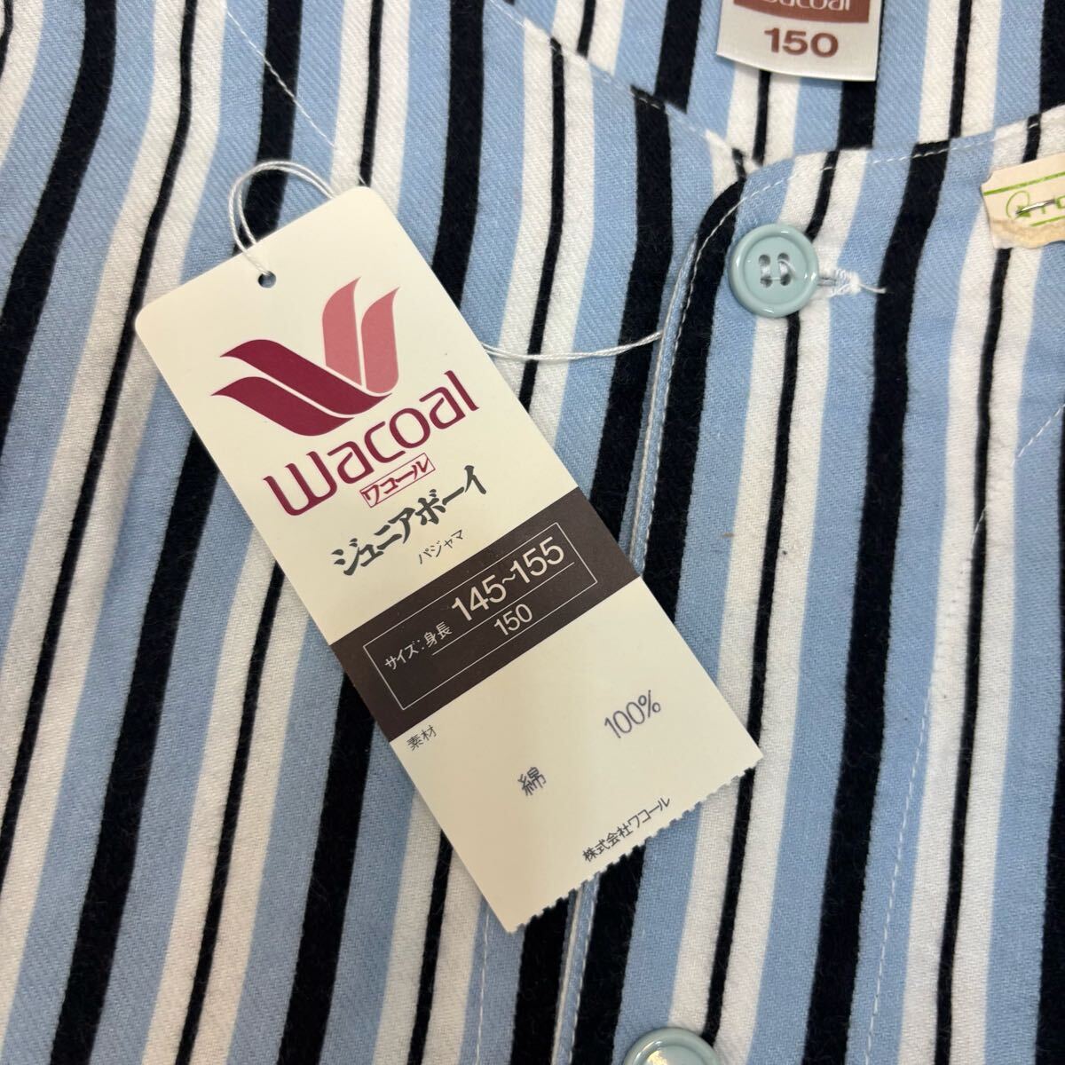 新品 タグ付き 日本製 ワコール ジュニアボーイ パジャマ 綿100% ストライプ 青 ブルー 男の子 子供服 上下 長袖 ルームウェア サイズ150