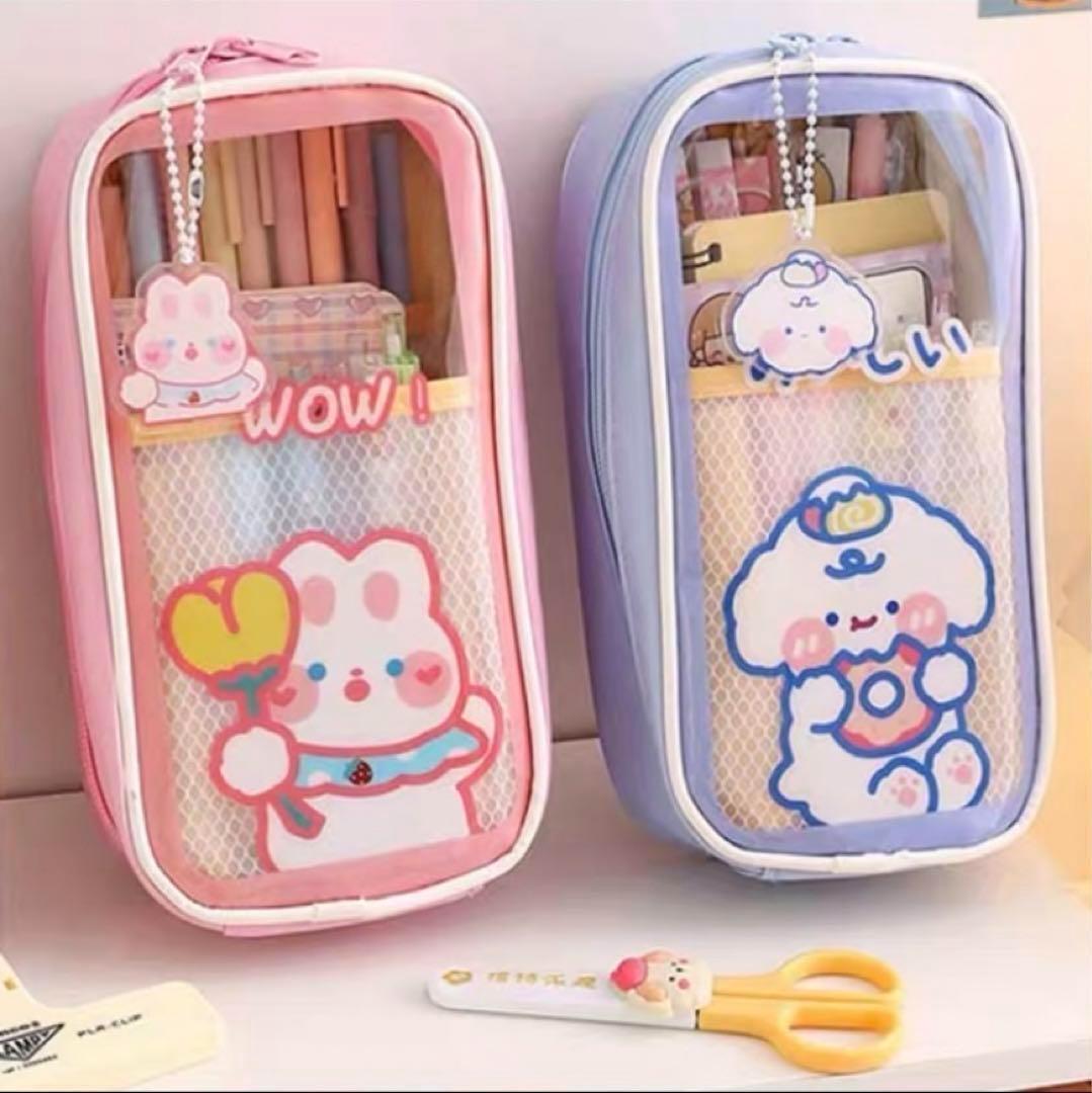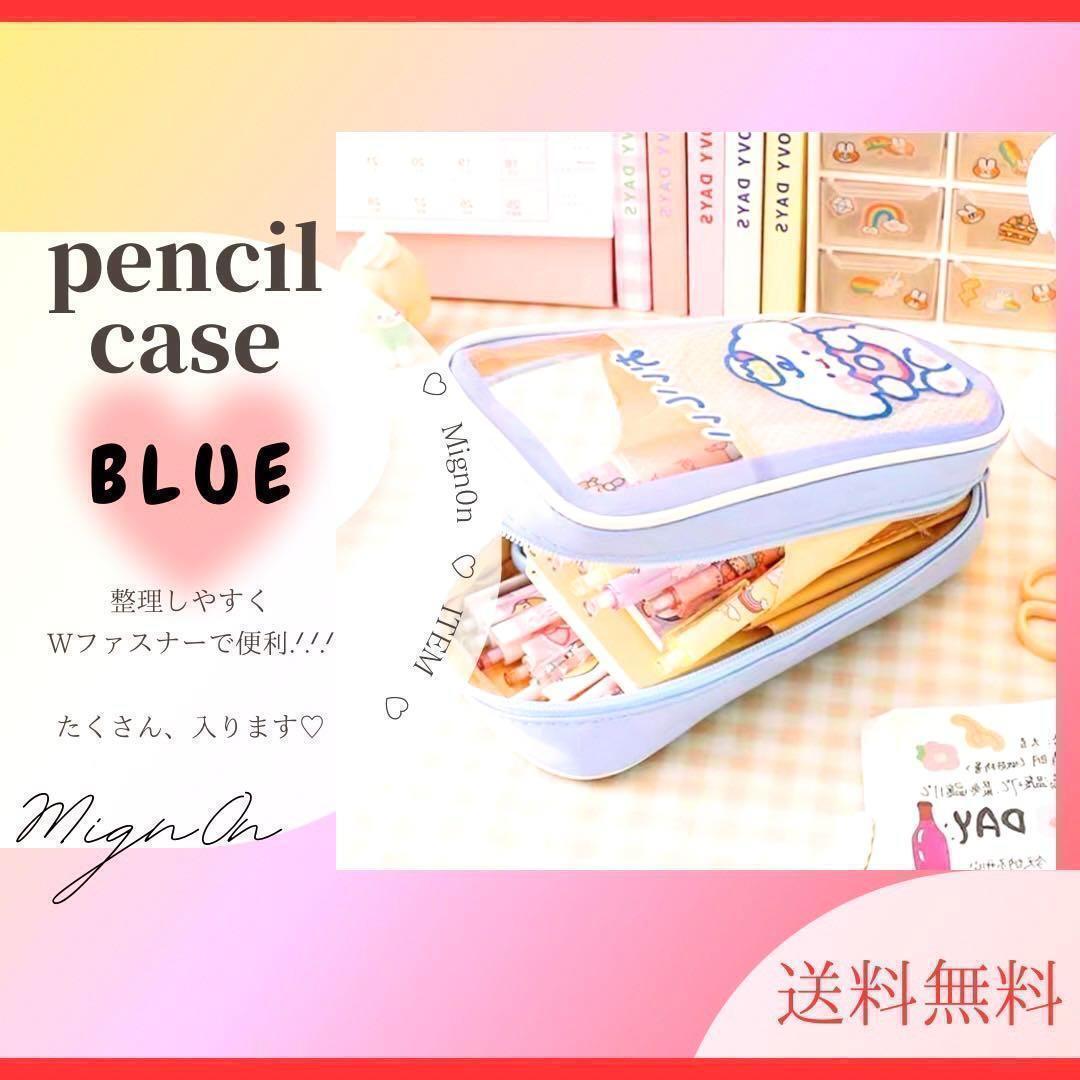 大幅値下げ ペンケース【ブルー】おしゃれ 大容量鉛筆バッグ 文房具バッグ かわいい 鉛筆ポーチ ペンケース 透明 ペンポーチ クリア 588