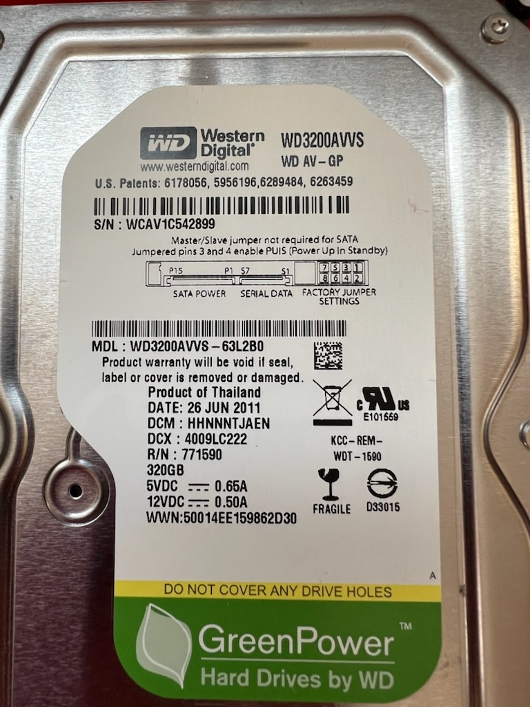 ハードディスク Western Digital WD3200AVVS-63L2B0 320GB