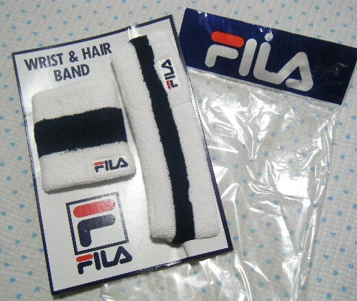 フィラ FILA テニス用リストバンド&ヘアバンド 2点セット 白×紺色 サイズ FREE 綿/アクリル/他素材 日本製/鐘紡㈱製 定価 1,650円