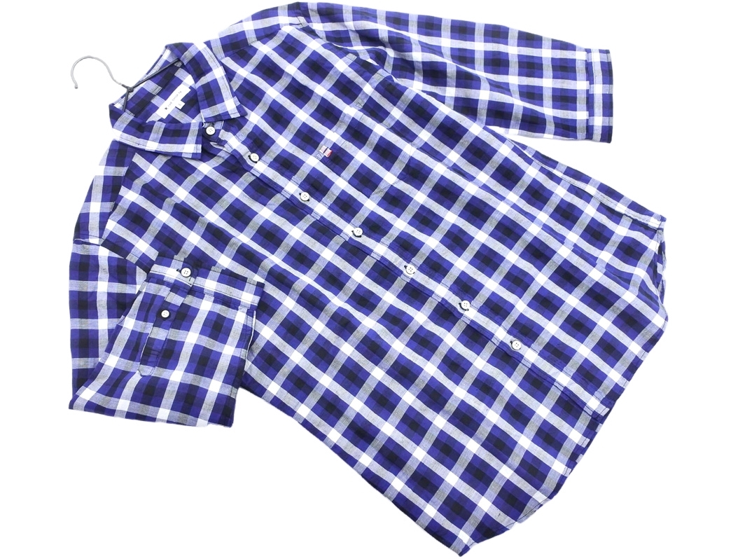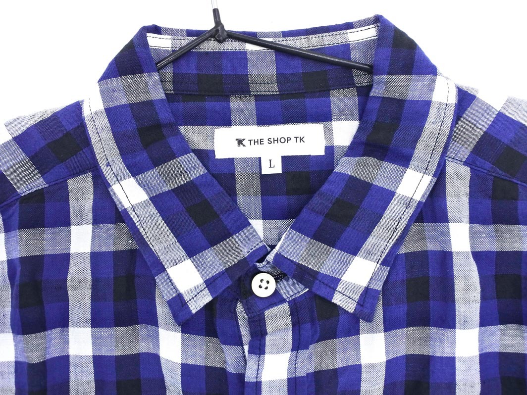 Product name: THE SHOP TK ザショップティーケー タケオキクチ リネン混 チェック 7分袖 シャツ sizeL/紺 ■◇ ☆ fdb4 メンズ
