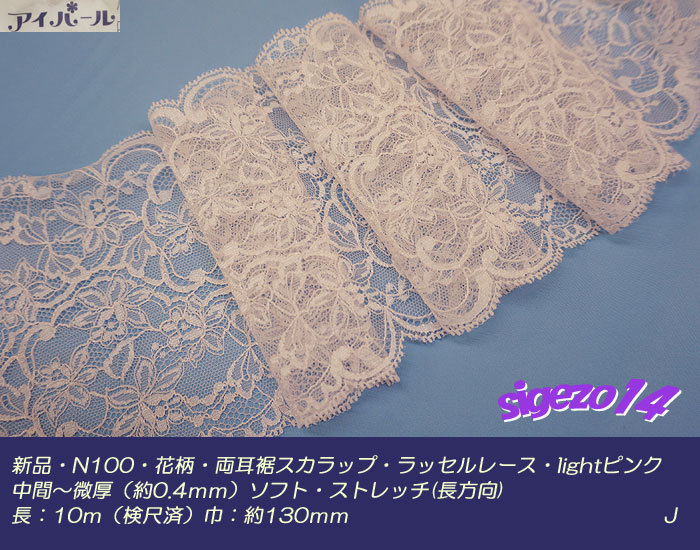 新品・N100・花柄・両耳裾スカラップ・ラッセルレース・lightピンク