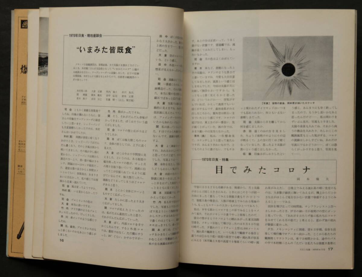 流星の実経路決定法/1970年日食特集/ベネット彗星観測報告/アポロが持ち帰った月の石/20センチ彗星捜索機の作製/川崎天文同好会の活動/多胡・佐藤・小坂彗星観測手記/特集:流星とその観測/水星の日面経過の観測/本田新星の観測データ/