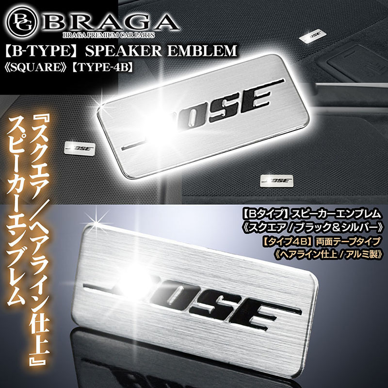 タイプ4B/4P 両面テープBタイプ/スピーカー スクエア エンブレム/4個セット/アルミ製 ポリッシュ 鏡面仕上/互換品/ブラガ BG BRAGA