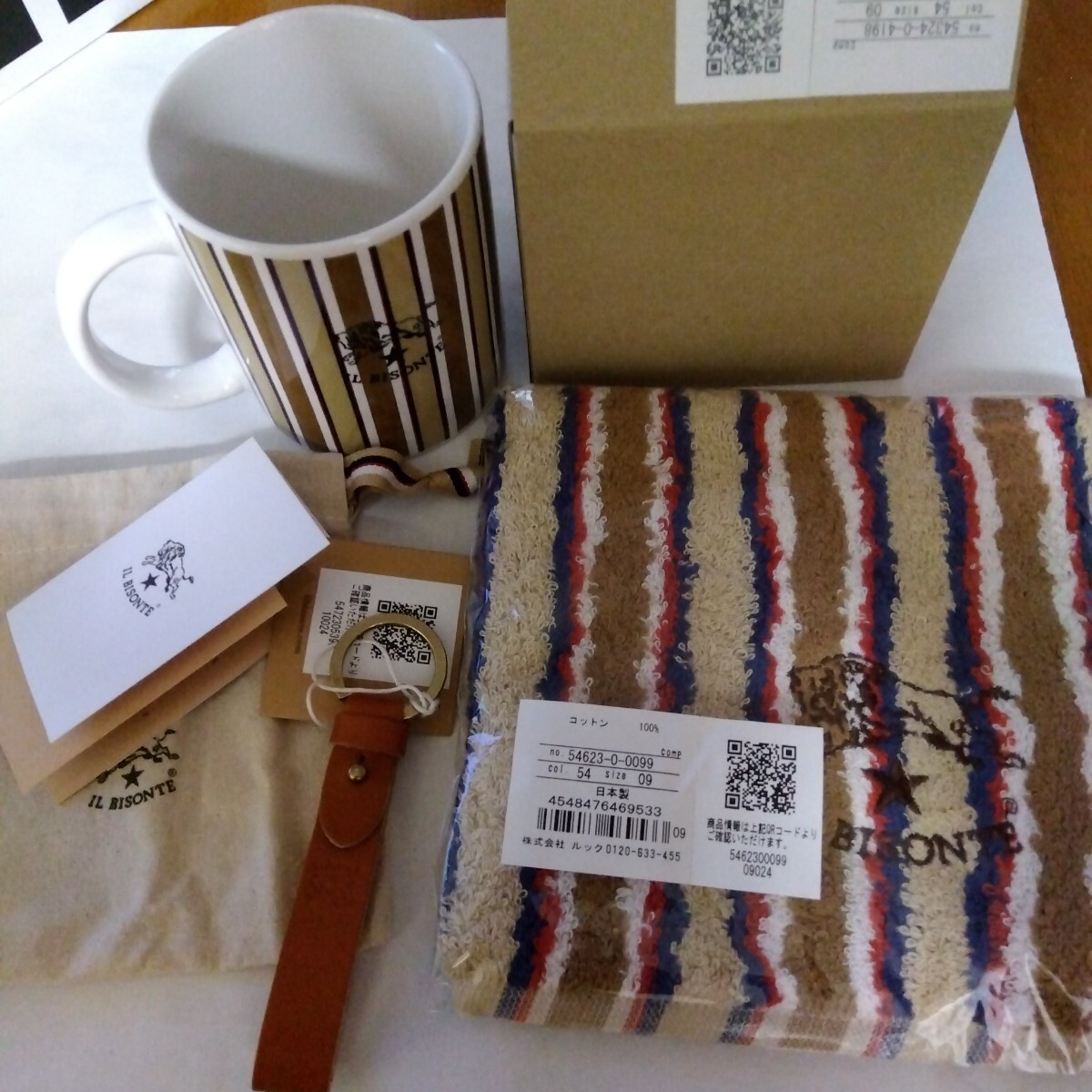 IL BISONTEストライプ柄マグカップ、ハンドタオル