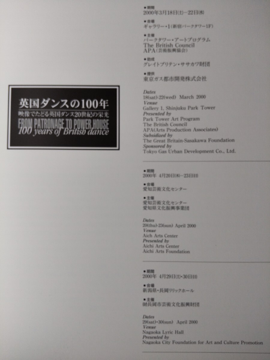 図録/英国ダンスの100年 映像でたどる英国ダンス20世紀の栄光 2000 バレエ/ダンス/振付家/ダンス・カンパニー
