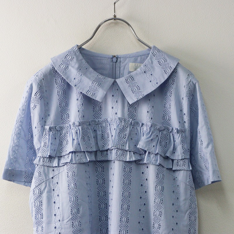 未使用 2024SS ジェーンマープル Jane Marple Vintage stripe lace frill-trim dress レース フリル ドレス M/サックス【2400014401929】