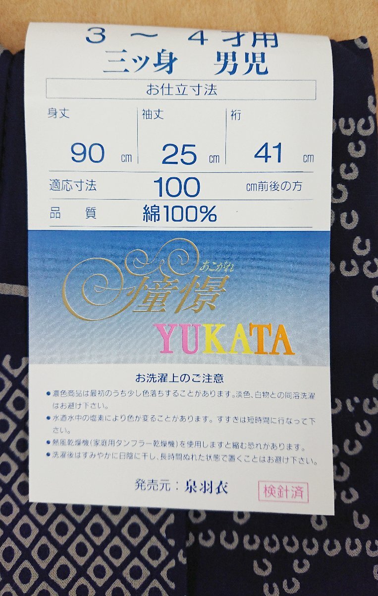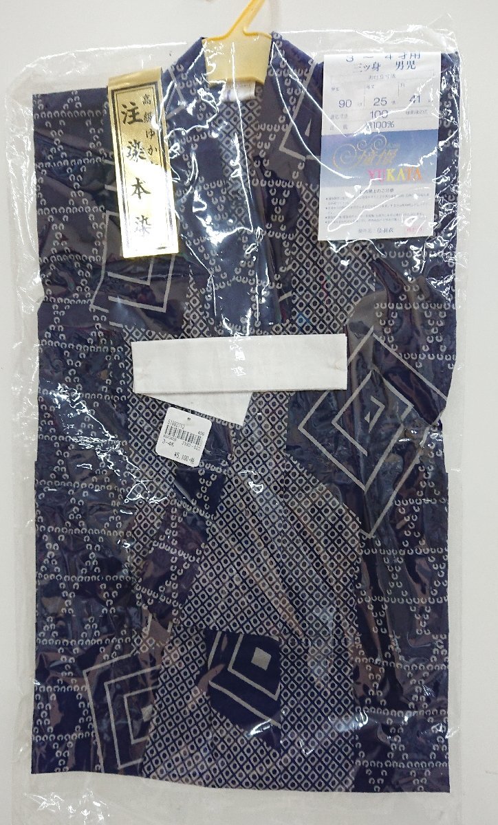 A3 タグ付き♪未使用保管品!! 憧憬 あこがれ 幼児 ゆかた 男児 三ッ身 3~4才用 身丈90cm 適応寸法100cm前後 綿100% 高級ゆかた/注染本染