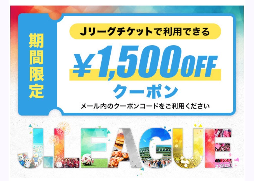 Jリーグ チケット 1500OFF クーポン コード通知