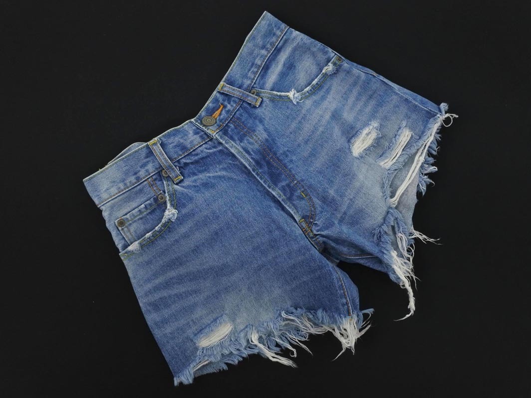 Product name: AZUL BY MOUSSY アズールバイマウジー ボタンフライ ダメージ加工 ショート デニムパンツ sizeM/紺 ■◆ ☆ fec1 レディース