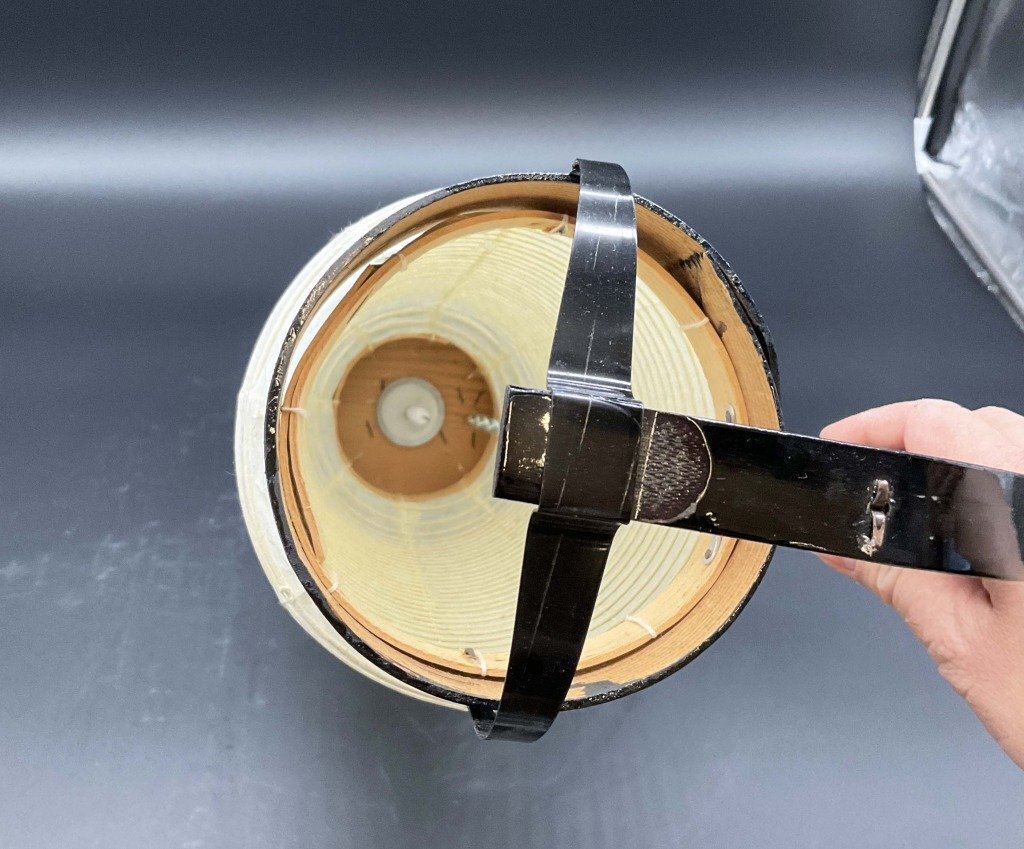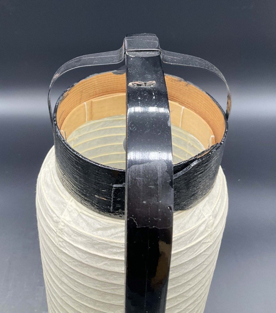 無地の弓張型提灯です。経年劣化により、和紙部分が色褪せております。