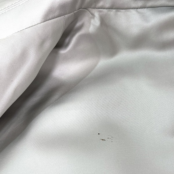 コンディション備考前身頃左ポケット付近の表裏ともにシミがございます。また内側右肩付近に汚れがございます。購入はご了承頂ける方にお願い致します。