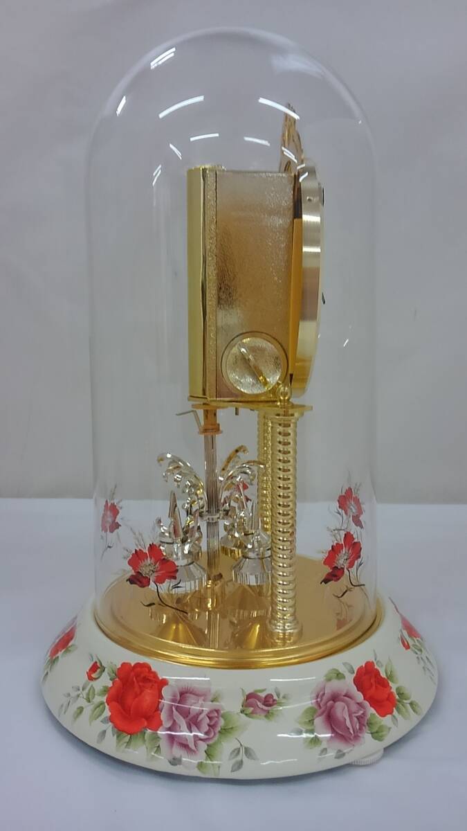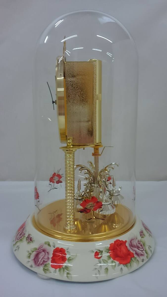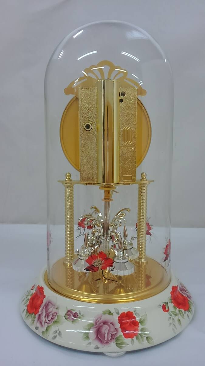 Product name: 【菊水-099】※動作確認済み【日新時計NISSIN CLOCK MASTER QUARTZ】置き時計/電池式/ガラスドーム/アンティーク/花柄/昭和レトロ(IS)