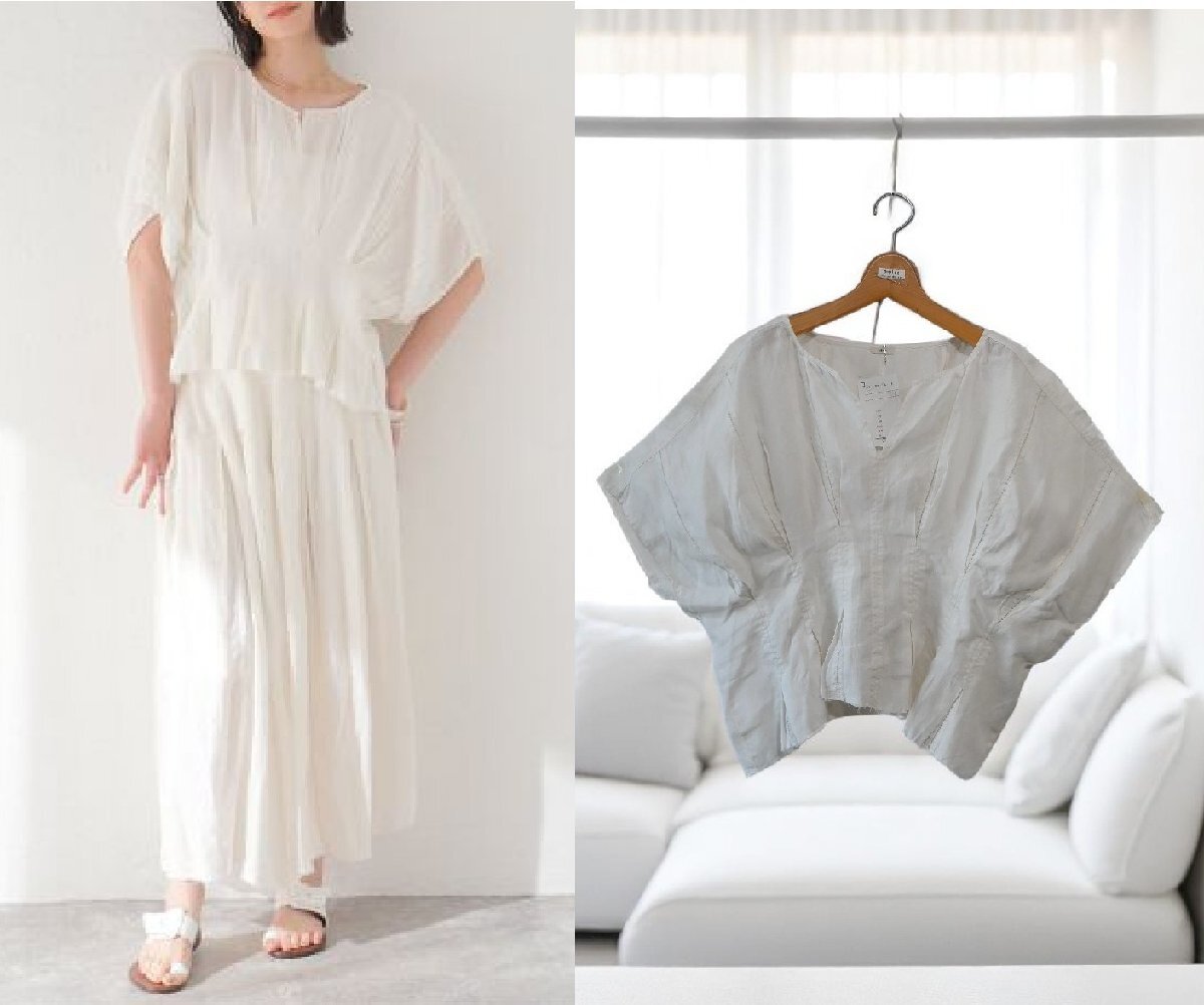 ふんだんに入れたタックとさりげないハシゴレースがデザインポイント。