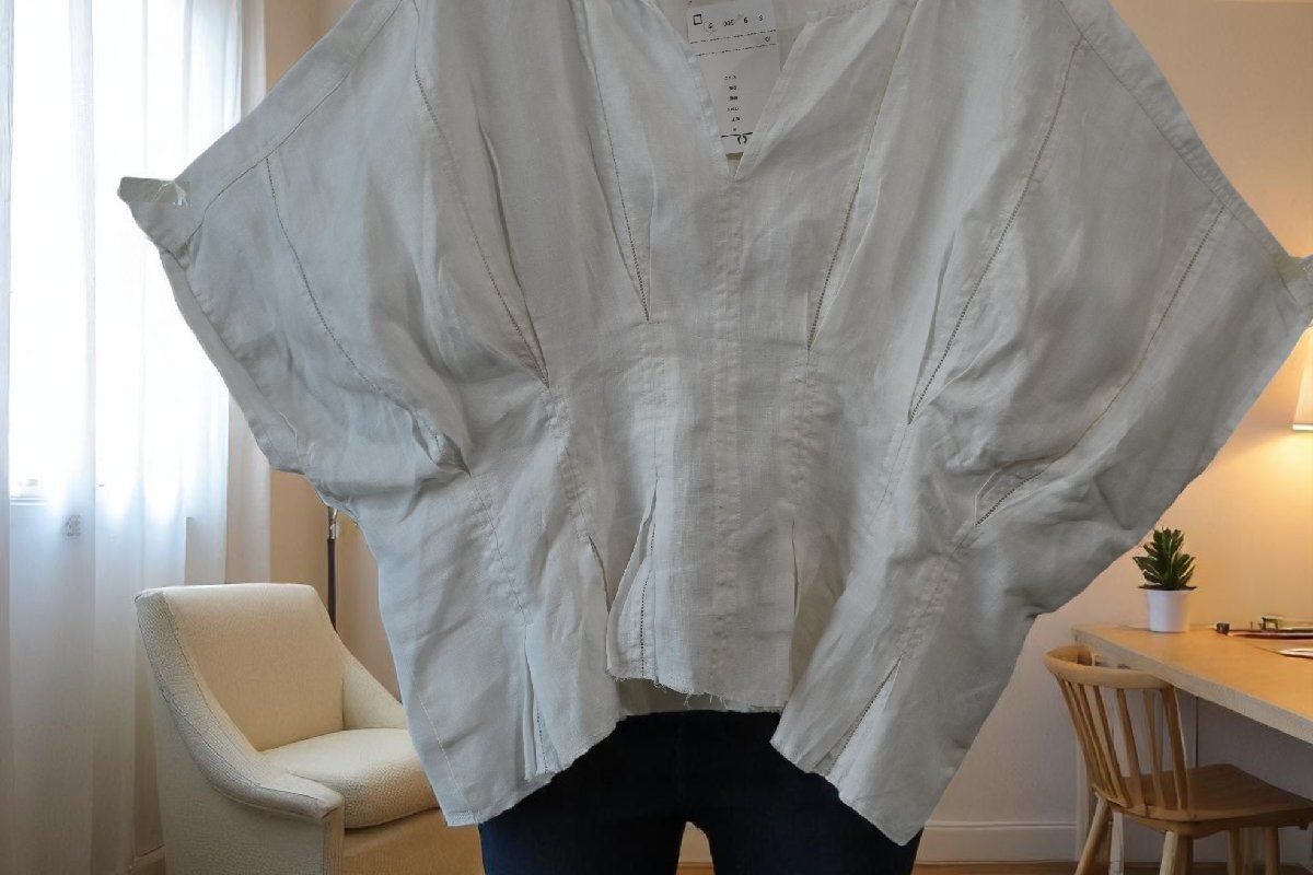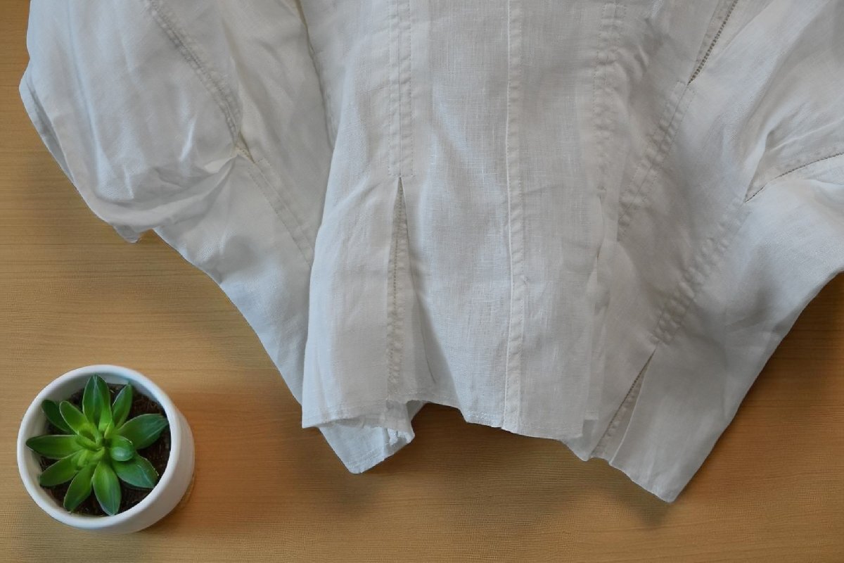 ナチュラルなリネンキャンバス素材を使用したブラウス。