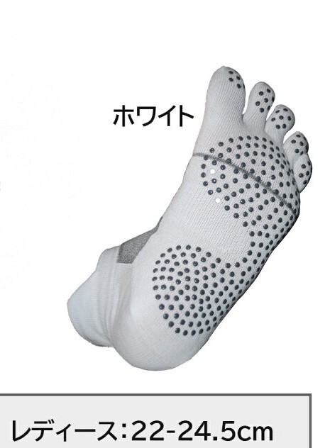 【数量1~5足迄】レディース 22~24.4cm 5本指 滑り止め ソックス ホワイト 足裏をがっちりグリップ ランニング スポーツ スニーカーゴルフ