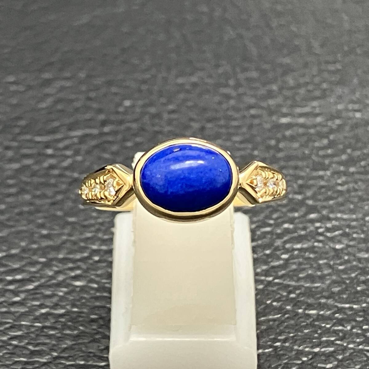 Product name: 鑑別カード付 新品仕上済み 天然ラピスラズリ 天然ダイヤモンド0.06ct デザイン リング K18 9号 3.0g 金 イエロー ゴールド 指輪