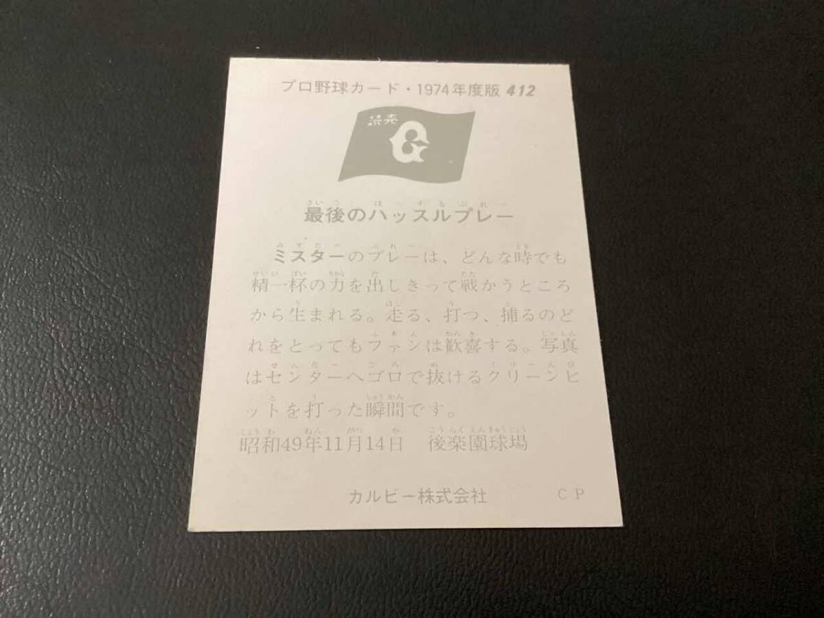 美品 カルビー74年 長島(巨人)No.412 プロ野球カード