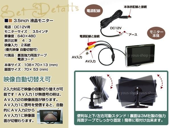 送料無料 3.5インチ オンダッシュモニター バック連動可
