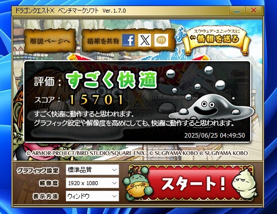 • ドラクエベンチマークでスコア15701すごく快適と評価されました。