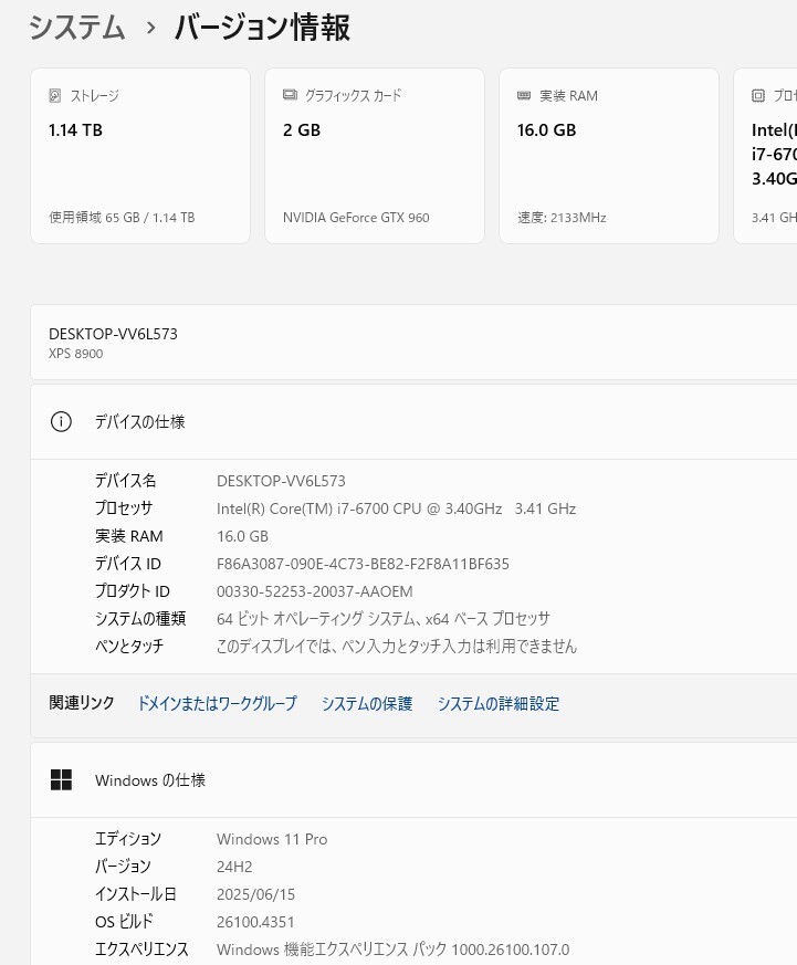 Product name: Dell XPS 8900●Core i7-6700 3.40GHz/メモリ16GB 新品SSD256GB+HDD1TB/GTX960/無線LAN Bluetooth/Win11 Pro
