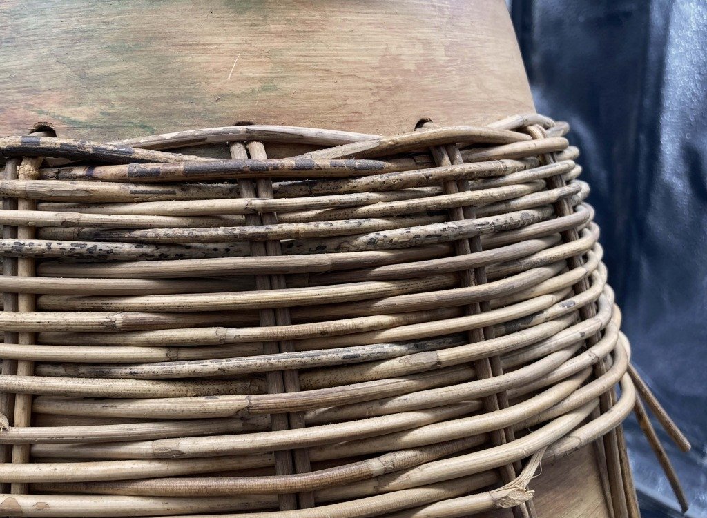 藁のような、丈夫な植物で編まれた飾りが特徴的です。