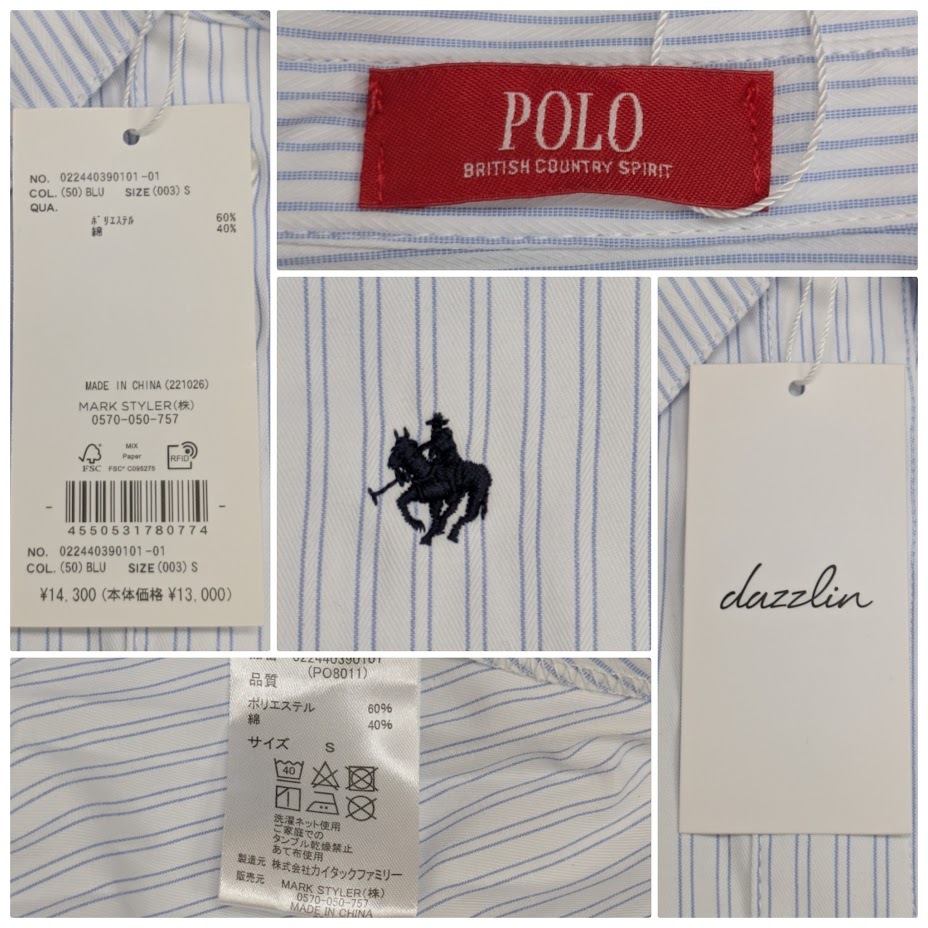 Product name: 未使用品 dazzlin ワンピース POLO BCS コラボ ヘムレイヤードシャツワンピース 022440390101-01 ホワイト ブルー サイズ S ベルトなし