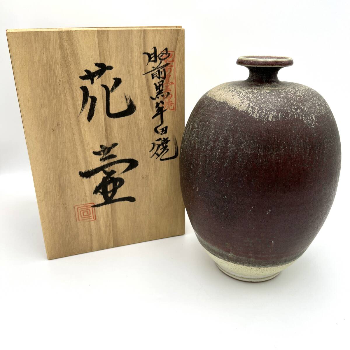 Product name: 肥前黒牟田焼 丸田宣政 花壺 共箱 肥前武雄 花瓶 花入れ 花器 一輪挿 高さ約25cm [25710]