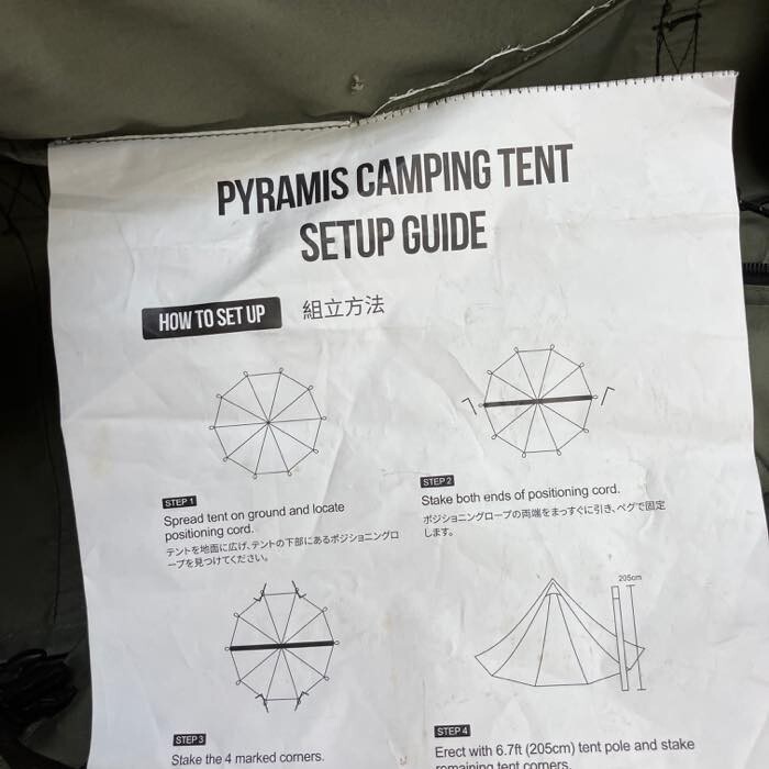 ※テントなど設営確認済みの記載がないものは生地の汚れや焚き火による穴あきなど見落としがある場合がございます。