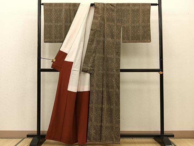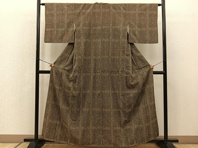 Product name: 平和屋着物■本塩沢 格子花文 正絹 逸品 BAAR5950hz
