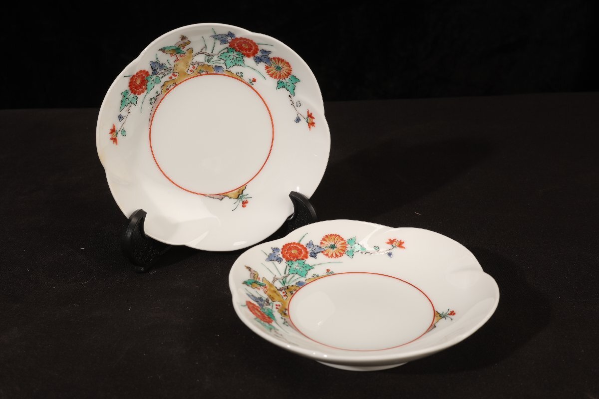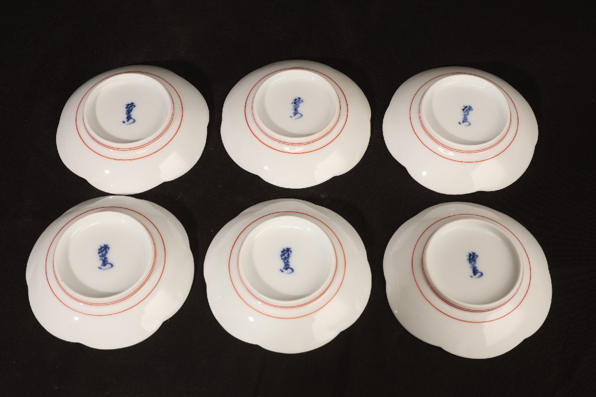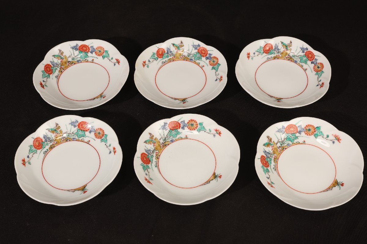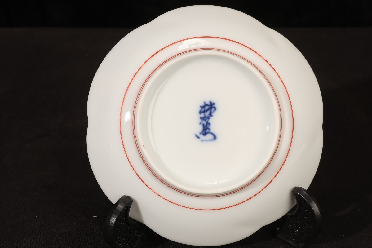 Product name: 【珍品堂】1円から U10-J24 有田焼 人間国宝 十四代 柿右衛門作 錦梅菊紋 皿 6枚 共箱 木箱 茶道具 煎茶道具 古美術 骨董品 本物保証