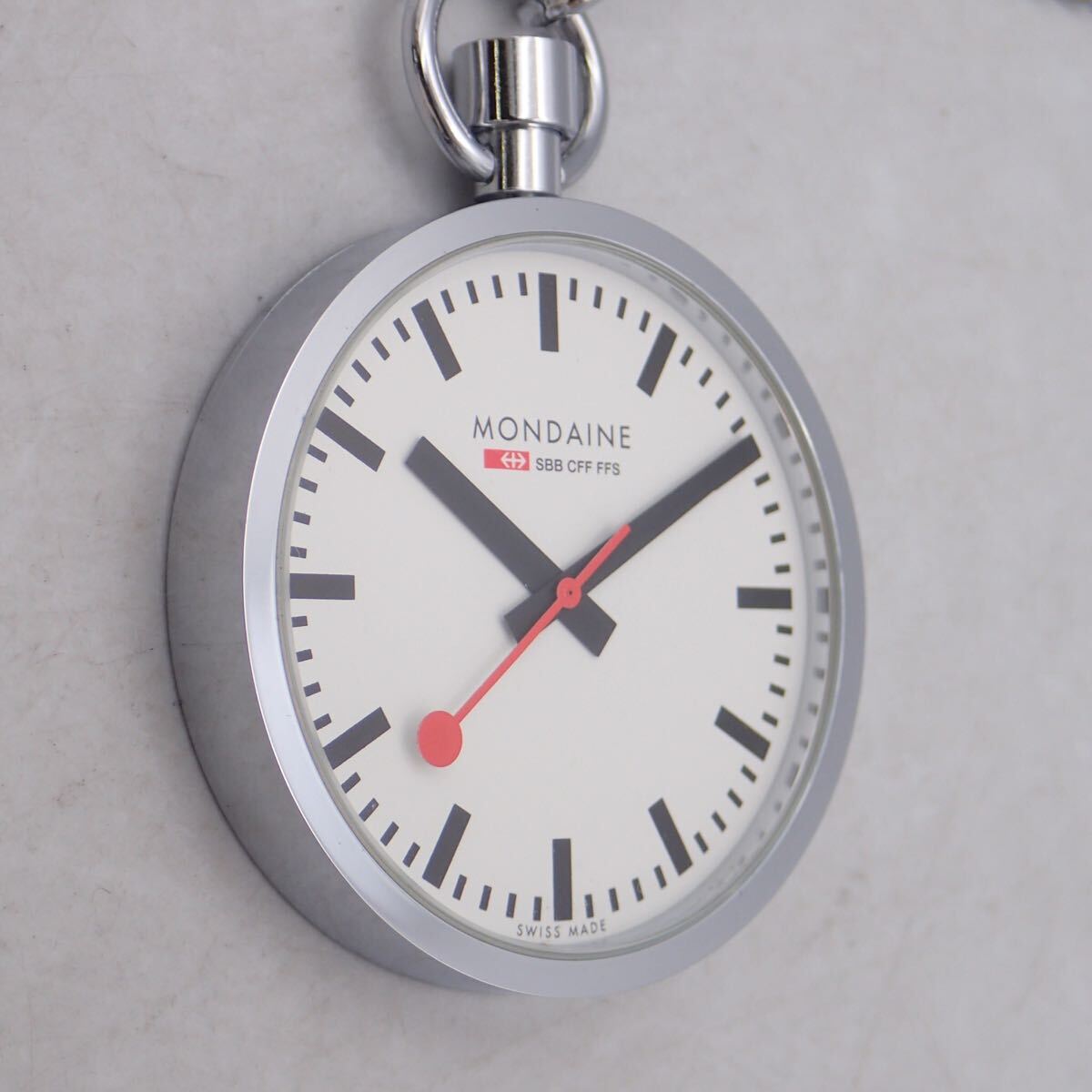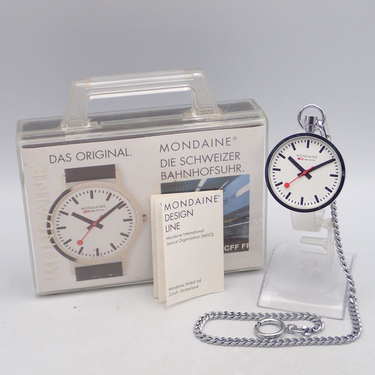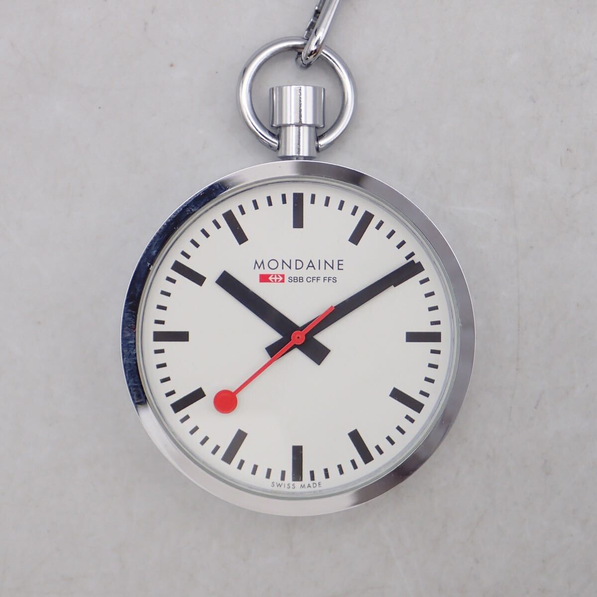 Product name: お06439/MONDAINE モンディーン/クオーツ/懐中時計/鉄道時計/SBB CFF FFS/チェーン・ケース・取扱説明書・保証書付/ジャンク